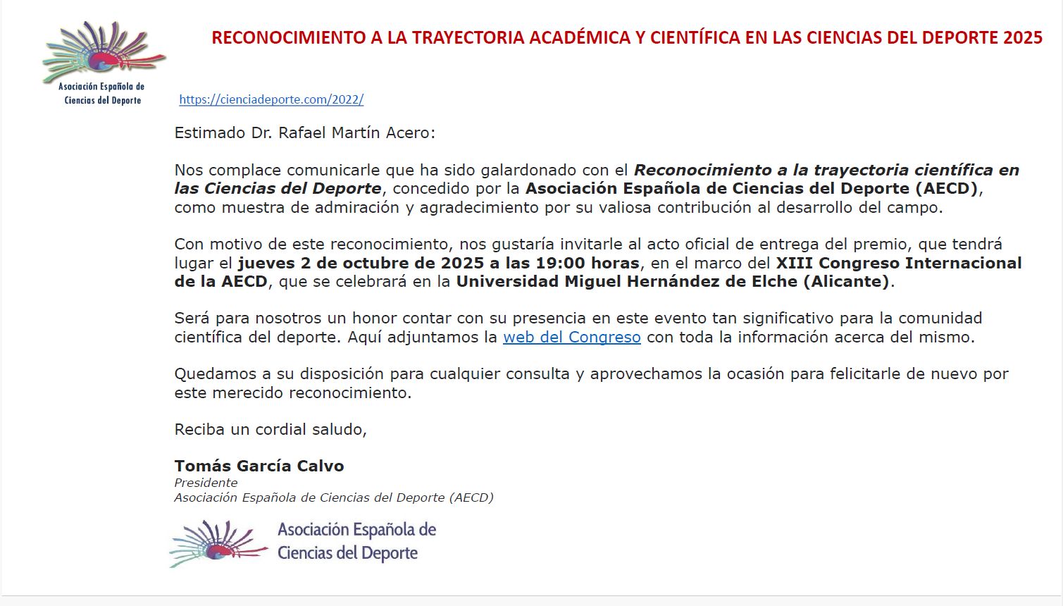 Rafael Martín Acero "Habrá que trabajar desde la reflexión" (pdf) "Dopaje en España" - Newsletter Agencia Estatal Antidopaje - Nov. 2010 Rafael Martín Acero (Presidente de la Conferencia Española de Institutos y Facultades de Ciencias del Movimiento): "España, a diferencia de algunas opiniones actuales muy interesadas, está a la cabeza mundial en legislación antidoping. En poco tiempo, está desarrollando políticas activas que tendrán efectos positivos, a diversos plazos." “Habrá que trabajar desde la reflexión”. |